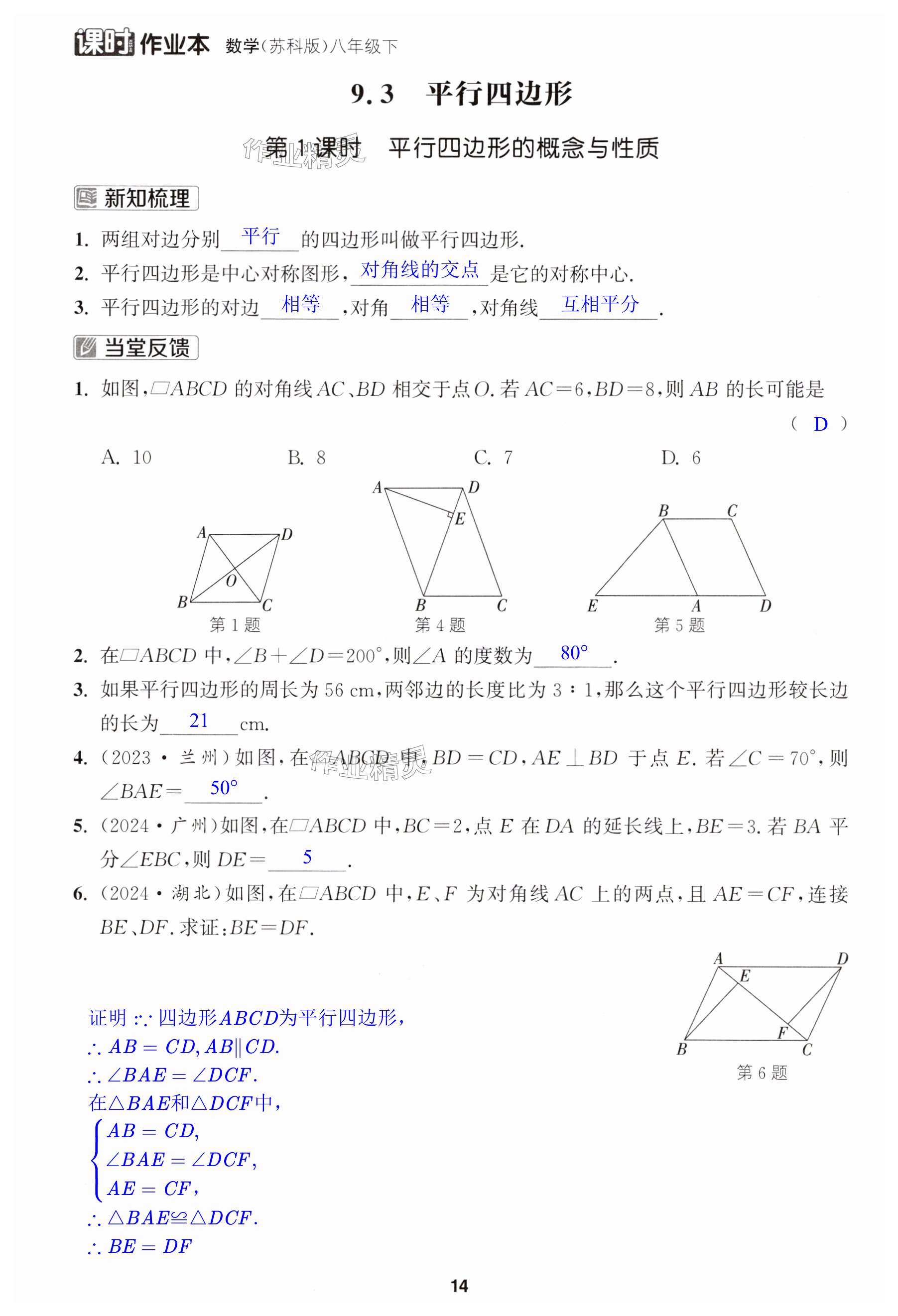 注:目前有些书本章节名称可能整理的还不是很完善,但都是按照顺序排列的,请同学们按照顺序仔细查找。练习册 2025年通成学典课时作业本八年级数学下册苏科版苏州专版 答案主要是用来给同学们做完题方便对答案用的,请勿直接抄袭。