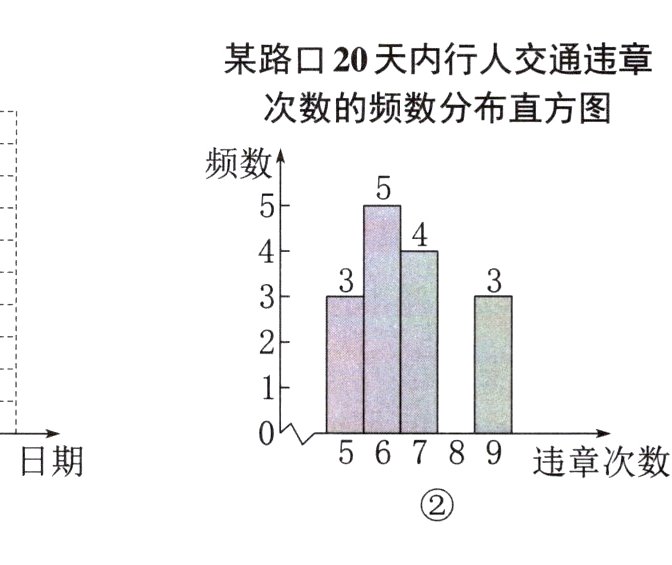8. 为积极创建全国文明城市,某市对某路口的行人交通违章情况进行了20天的调查,将所得数据绘制成如图①②所示的统计图(图②不完整).