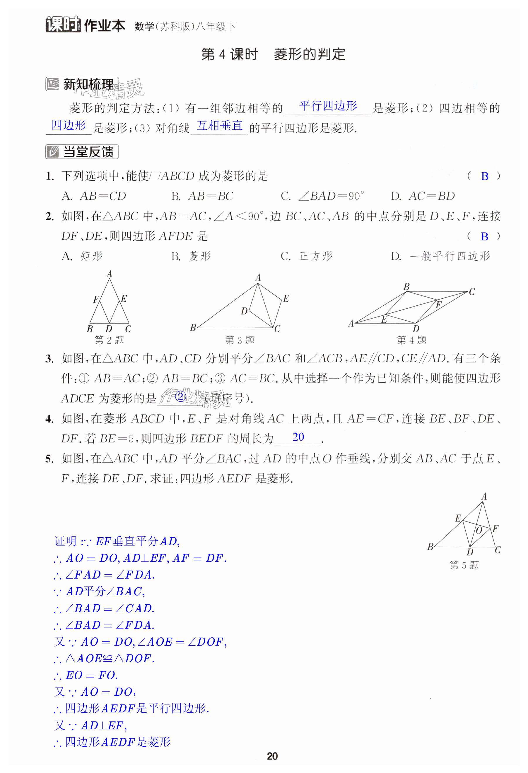 注:目前有些书本章节名称可能整理的还不是很完善,但都是按照顺序排列的,请同学们按照顺序仔细查找。练习册 2025年通成学典课时作业本八年级数学下册苏科版苏州专版 答案主要是用来给同学们做完题方便对答案用的,请勿直接抄袭。