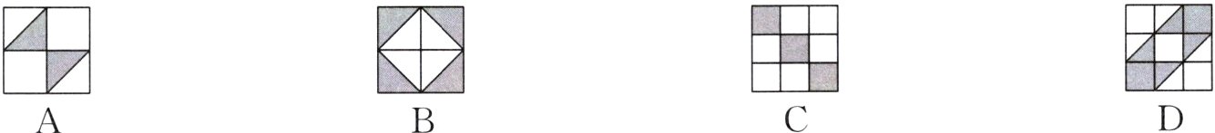 2. 分别向下列选项中的区域随机掷一枚石子,石子落在涂色部分可能性最小的是 ( )