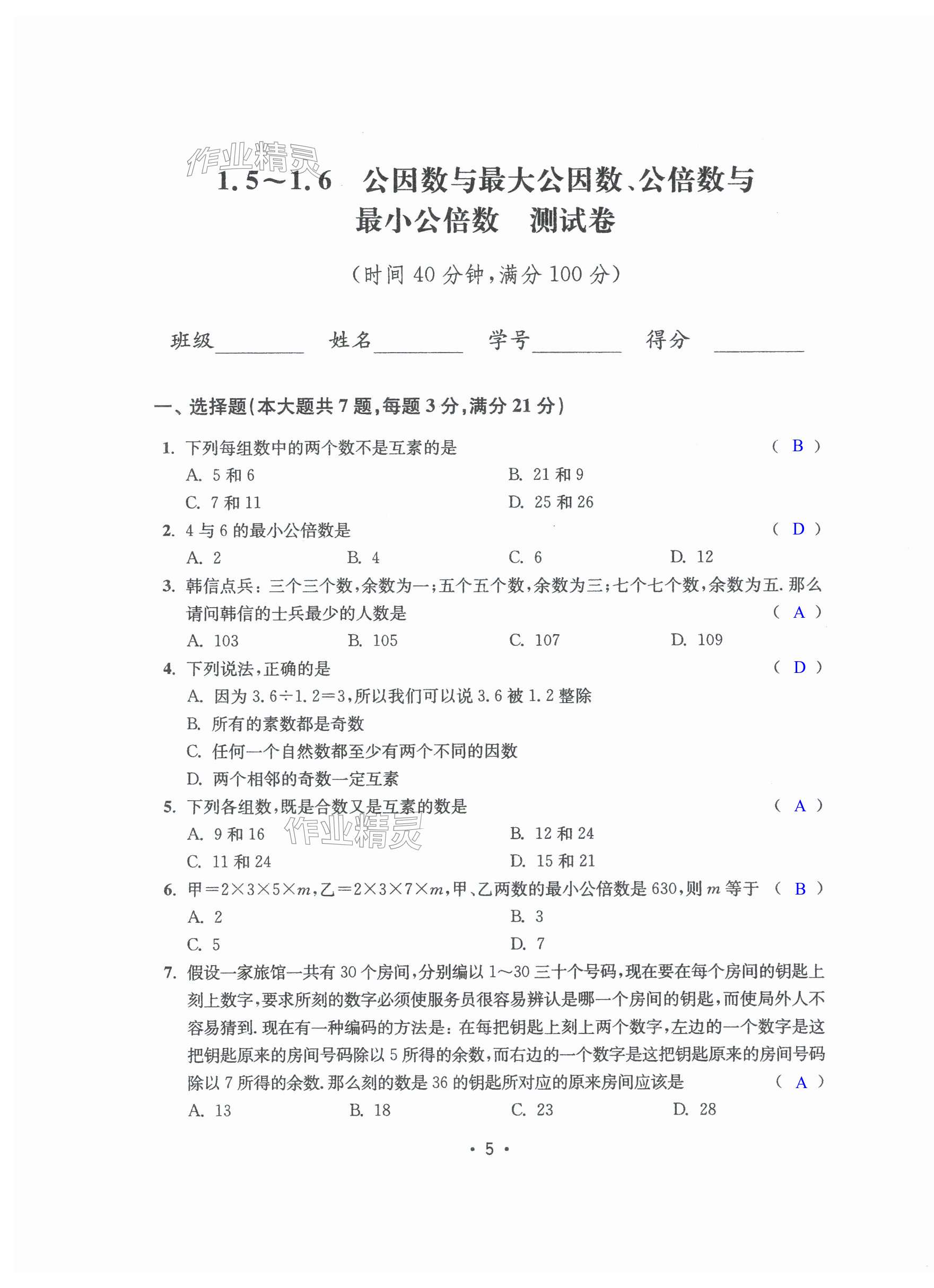 注:目前有些书本章节名称可能整理的还不是很完善,但都是按照顺序排列的,请同学们按照顺序仔细查找。练习册 2024年全优金典六年级数学上册沪教版54制 答案主要是用来给同学们做完题方便对答案用的,请勿直接抄袭。