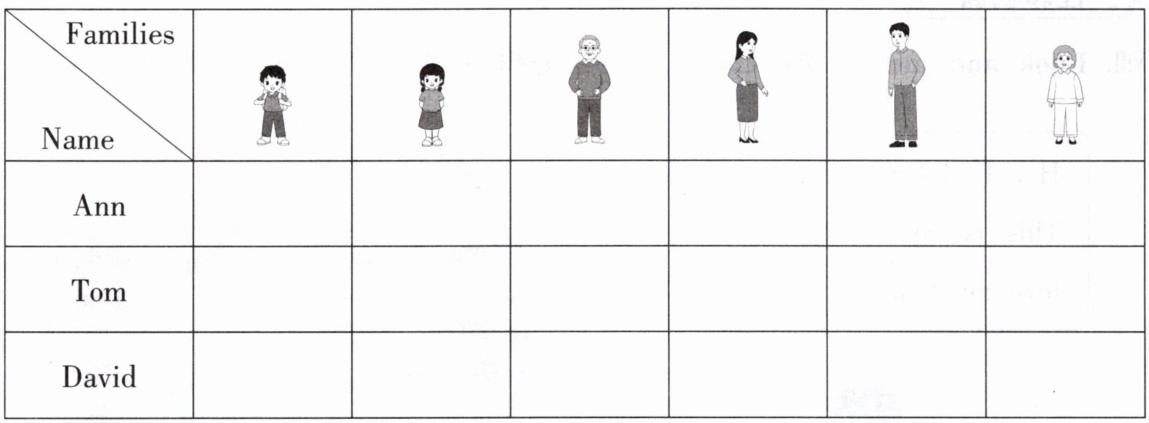1. Read and tick. (阅读短文,用“√”勾出每位同学提到的家人。)
