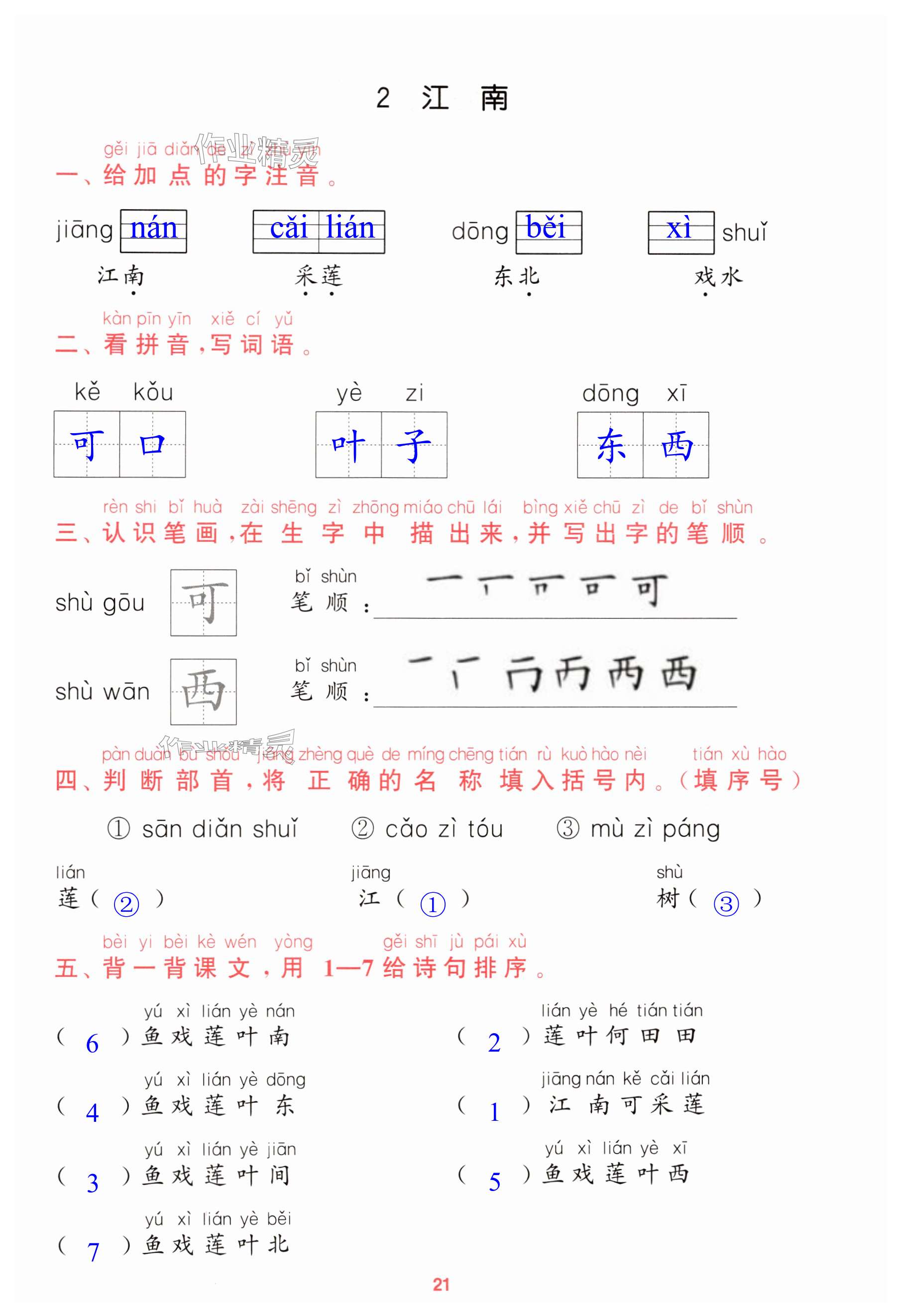 注:目前有些书本章节名称可能整理的还不是很完善,但都是按照顺序排列的,请同学们按照顺序仔细查找。练习册 2024年通成学典课时作业本一年级语文上册人教版苏州专版 答案主要是用来给同学们做完题方便对答案用的,请勿直接抄袭。