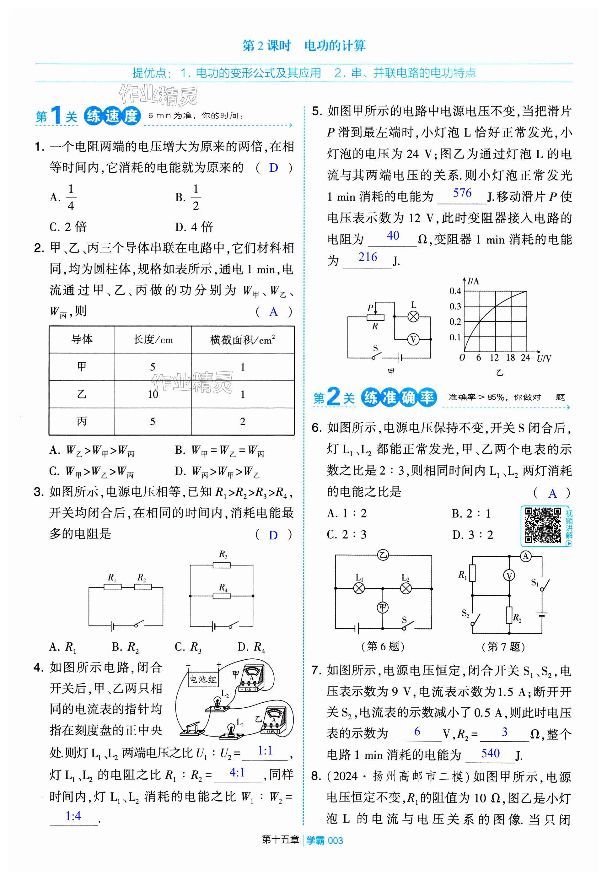 注:目前有些书本章节名称可能整理的还不是很完善,但都是按照顺序排列的,请同学们按照顺序仔细查找。练习册 2025年学霸甘肃少年儿童出版社九年级物理下册苏科版 答案主要是用来给同学们做完题方便对答案用的,请勿直接抄袭。