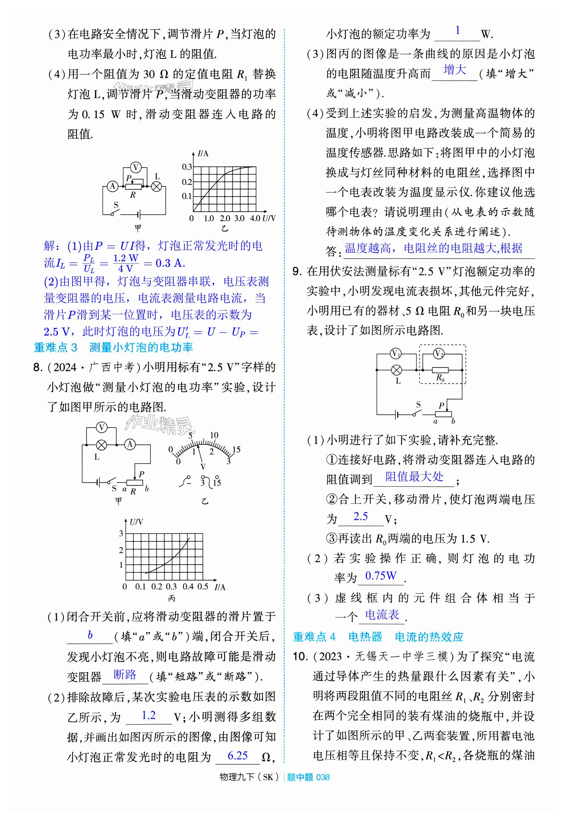 注:目前有些书本章节名称可能整理的还不是很完善,但都是按照顺序排列的,请同学们按照顺序仔细查找。练习册 2025年学霸甘肃少年儿童出版社九年级物理下册苏科版 答案主要是用来给同学们做完题方便对答案用的,请勿直接抄袭。