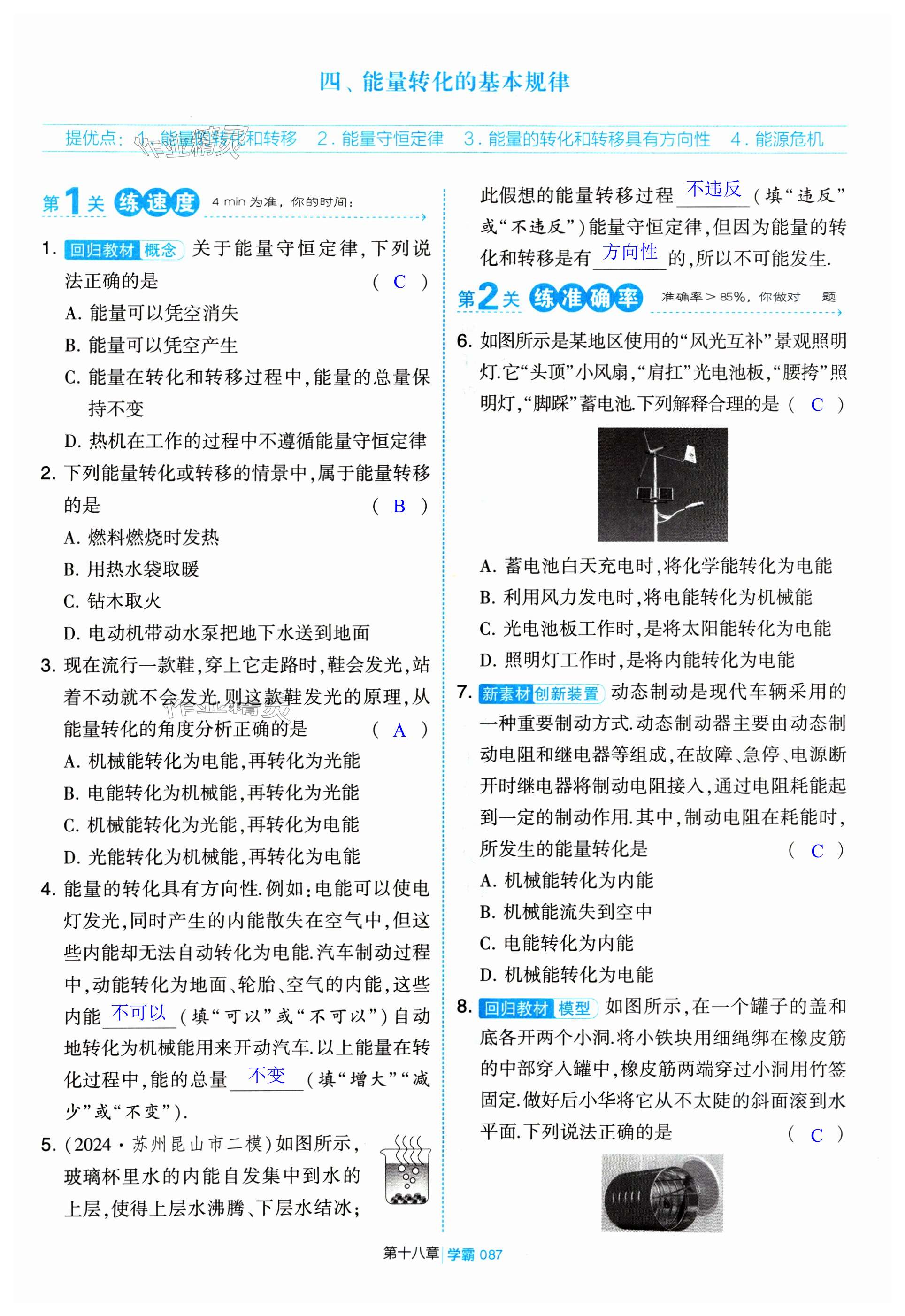 注:目前有些书本章节名称可能整理的还不是很完善,但都是按照顺序排列的,请同学们按照顺序仔细查找。练习册 2025年学霸甘肃少年儿童出版社九年级物理下册苏科版 答案主要是用来给同学们做完题方便对答案用的,请勿直接抄袭。