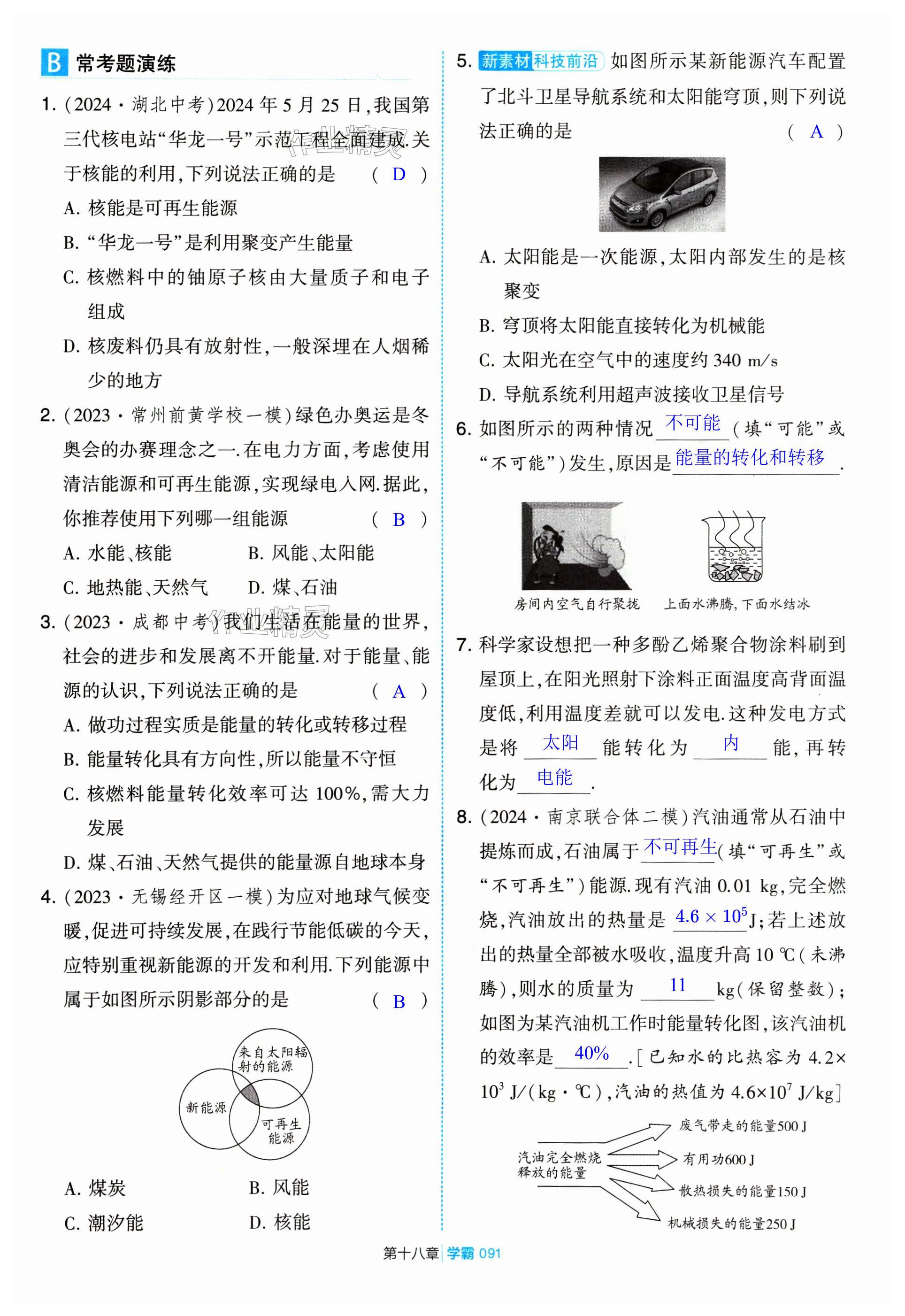 注:目前有些书本章节名称可能整理的还不是很完善,但都是按照顺序排列的,请同学们按照顺序仔细查找。练习册 2025年学霸甘肃少年儿童出版社九年级物理下册苏科版 答案主要是用来给同学们做完题方便对答案用的,请勿直接抄袭。