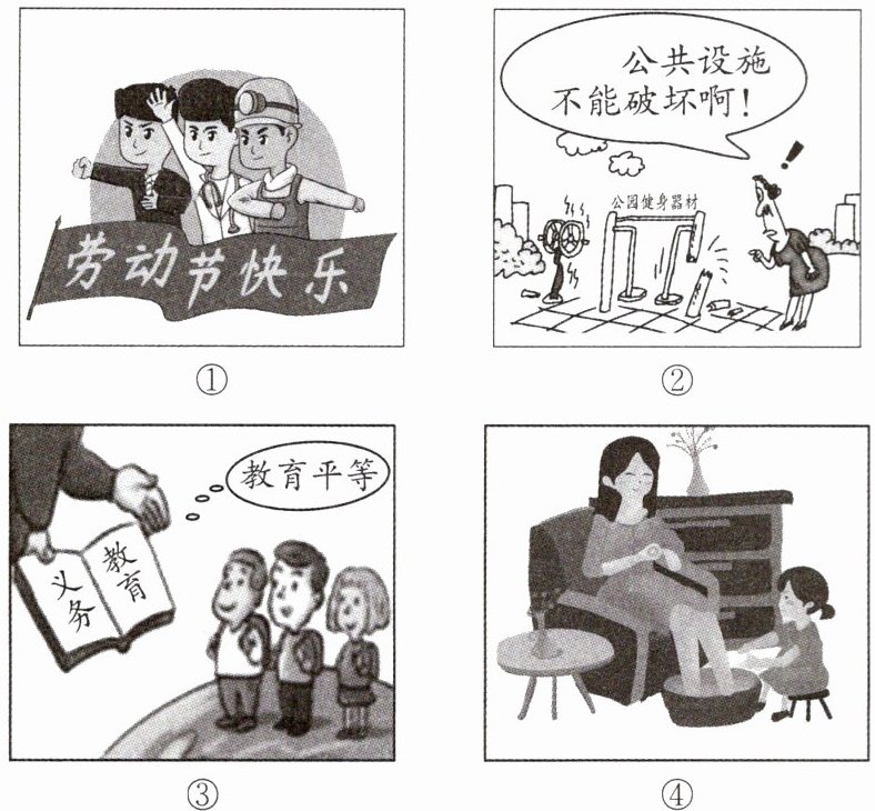 3(2023·河北廊坊二模)公民既是权利的主体又是义务的主体,公民的某些权利也是义务。下列四幅漫画能体现这一主旨的有( )