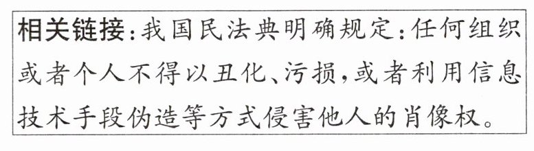 相关链接:我国民法典明确规定:任何组织或者个人不得以丑化、污损,或者利用信息技术手段伪造等方式侵害他人的肖像权。