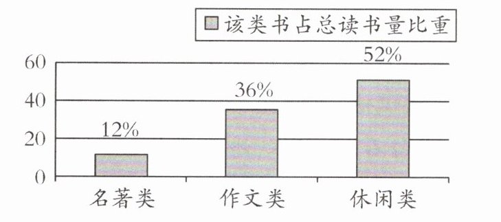 [示例]半数以上的中学生课外阅读的是休闲类作品(或:中学生课外阅读内容中休闲类占比最大)。@@[示例]科普类、学科类、科技类、历史类、科幻类、生活类。(任写两类即可)@@[示例一]举办手抄报(或:读书黑板报、读书演讲等)比赛,展示阅读成果,分享读书心得。