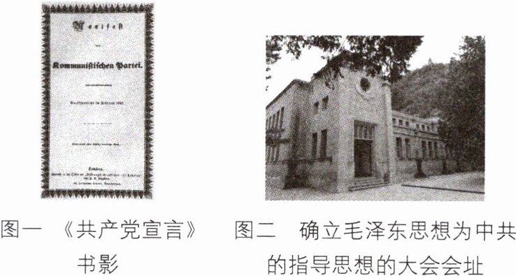 (1)图一著作的问世,标志着人类社会又一伟大思想的诞生。该思想的诞生与图二所示的中国共产党指导思想的确立相距多少年?