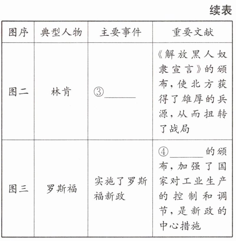 (2)林肯政府的施政措施和罗斯福新政有何相同作用?如果让你在上面“图四”位置添加一张符合本次探究主题的人物图片,你会选取哪位人物?请说明理由。