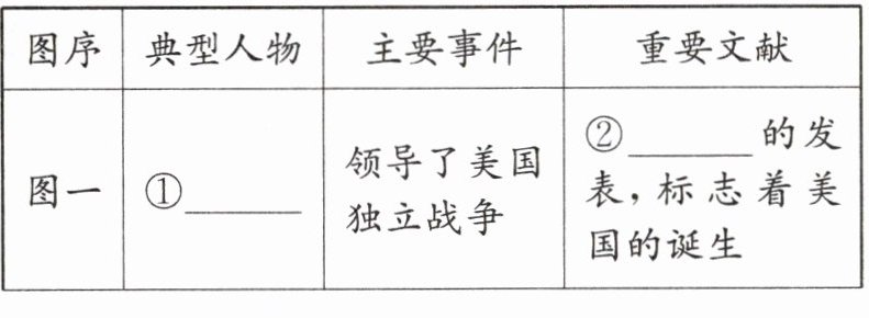 (1)①华盛顿 ②《独立宣言》 ③领导了美国内战(或领导了美国南北战争) ④《全国工业复兴法》