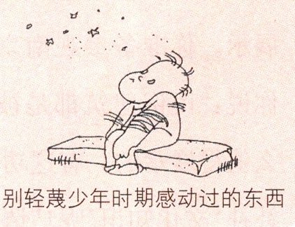 根据这幅漫画,结合你的生活经历或体验,以“别轻蔑少年时期感动过的东西”为话题,自拟题目,写一篇文章。