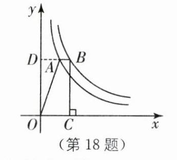 18. (2023·湘西州中考)如图,点$A$在函数$y = \frac{2}{x}(x>0)$的图象上,点$B$在函数$y = \frac{3}{x}(x>0)$的图象上,且$AB// x$轴,$BC\perp x$轴于点$C$,则四边形$ABCO$的面积为( ).