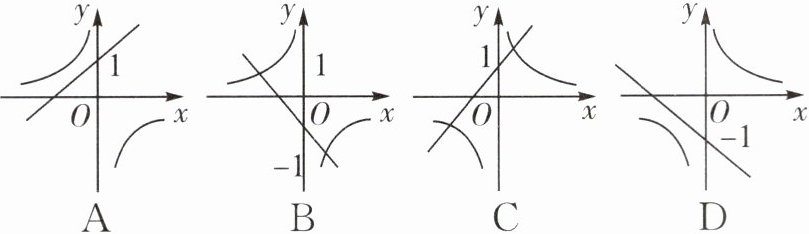 2. (2022·滨州中考)在同一平面直角坐标系中,函数$y = kx + 1$与$y = - \frac{k}{x}$($k$为常数且$k\neq0$)的图象大致是( )