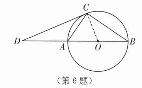 6 (2023·台州仙居二模)如图,$AB$是$\odot O$的直径,点$C$在$\odot O$上,点$D$在$BA$的延长线上,连接$CD$,$CA$,$CB$,且$DC^{2}=DA\cdot DB$.