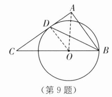 9 (2023·西安长安区一模)如图,在$Rt\triangle ABC$中,$\angle BAC = 90^{\circ}$,$O$为边$BC$上一点,以$OB$为半径的$\odot O$与$AC$相切于点$D$,连接$BD$.