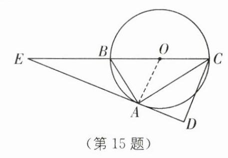 15(2023·云南中考)如图,$BC$是$\odot O$的直径,$A$是$\odot O$上异于$B$,$C$的点. $\odot O$外的点$E$在射线$CB$上,直线$EA$与$CD$垂直,垂足为$D$,且$DA\cdot AC = DC\cdot AB$. 设$\triangle ABE$的面积为$S_{1}$,$\triangle ACD$的面积为$S_{2}$.