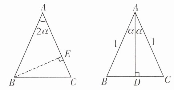 (2)如图,在$\triangle ABC$中,$AB = AC = 1$,$\angle BAC = 2\alpha$,请根据提示,利用面积方法验证结论。