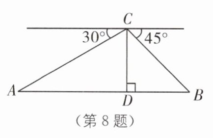 8 (2023·西宁城西区二模)如图,从移动信号接收塔顶C处测得地面A,B两点的俯角分别为30°,45°,若该信号接收塔顶C处的高度CD为45米,点A,D,B在同一直线上,则AB两点的距离是________米. (结果精确到1米,$\sqrt{3}$≈1.73)