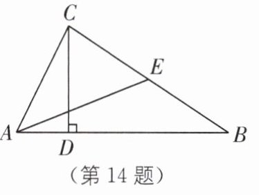 14(2023·上海徐汇区期末)如图,已知在△ABC中,CD⊥AB,垂足为D,AD = 2,BD = 6,tan B = $\frac{2}{3}$,点E是边BC的中点.
