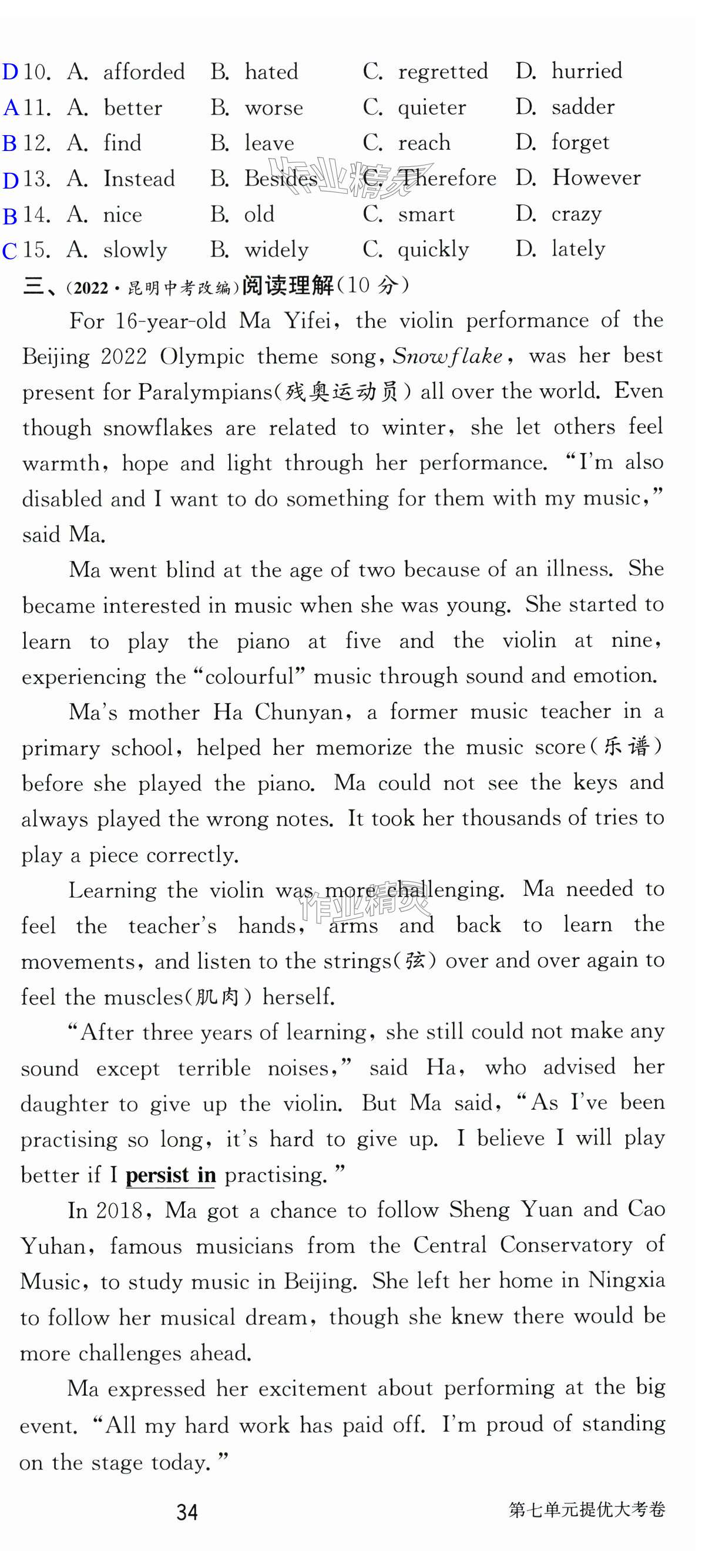 注:目前有些书本章节名称可能整理的还不是很完善,但都是按照顺序排列的,请同学们按照顺序仔细查找。练习册 2025年课时训练八年级英语下册译林版江苏人民出版社 答案主要是用来给同学们做完题方便对答案用的,请勿直接抄袭。