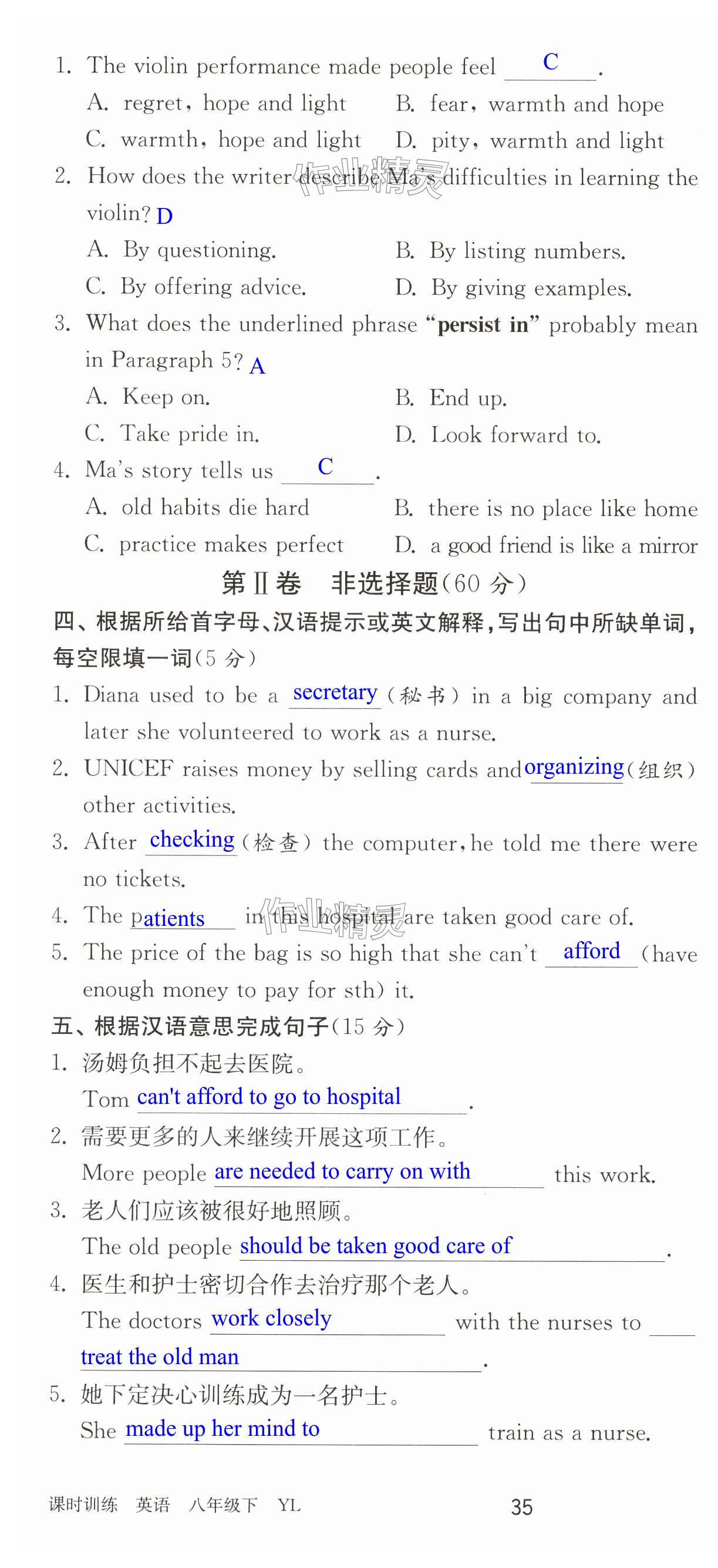 注:目前有些书本章节名称可能整理的还不是很完善,但都是按照顺序排列的,请同学们按照顺序仔细查找。练习册 2025年课时训练八年级英语下册译林版江苏人民出版社 答案主要是用来给同学们做完题方便对答案用的,请勿直接抄袭。