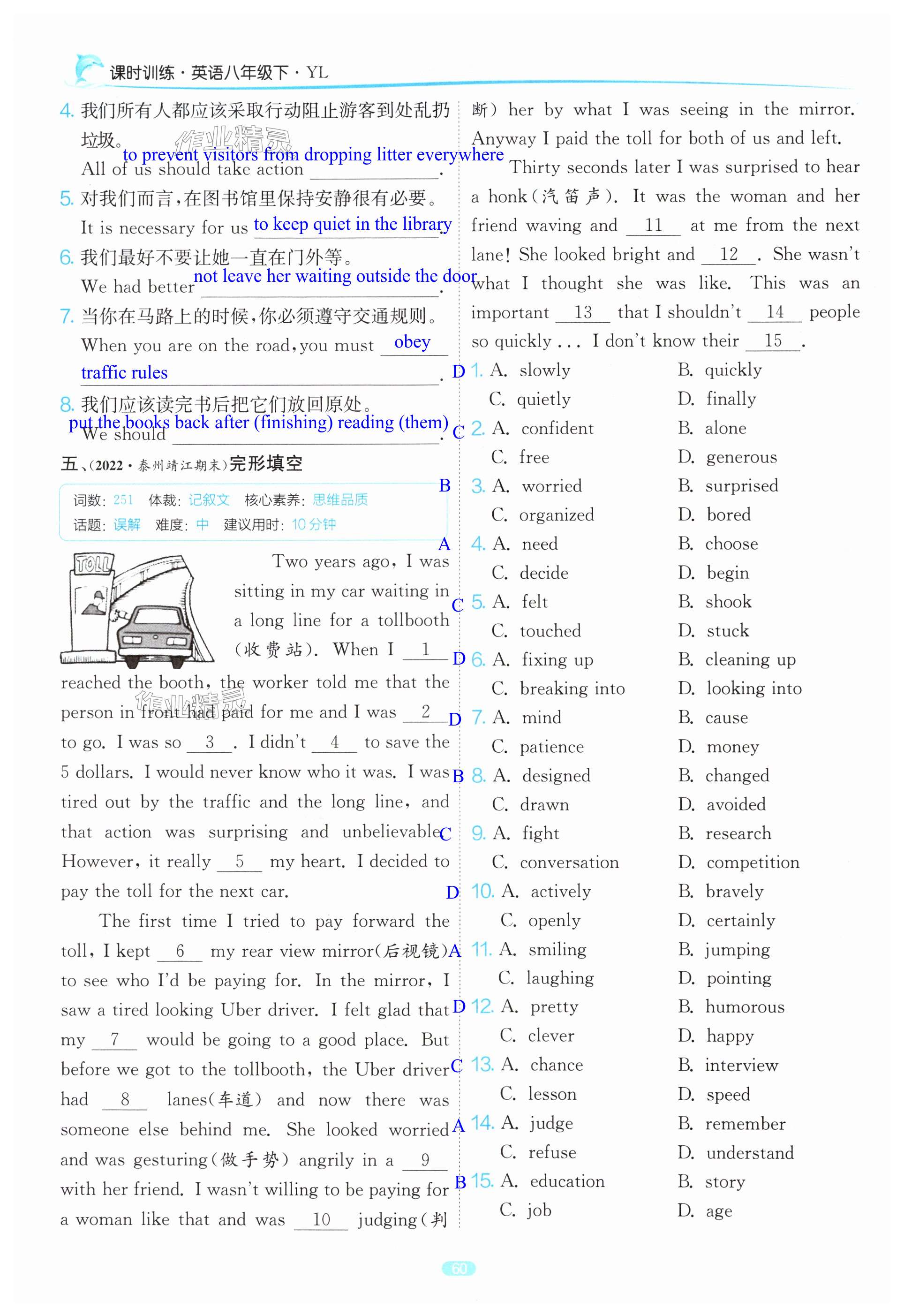 注:目前有些书本章节名称可能整理的还不是很完善,但都是按照顺序排列的,请同学们按照顺序仔细查找。练习册 2025年课时训练八年级英语下册译林版江苏人民出版社 答案主要是用来给同学们做完题方便对答案用的,请勿直接抄袭。