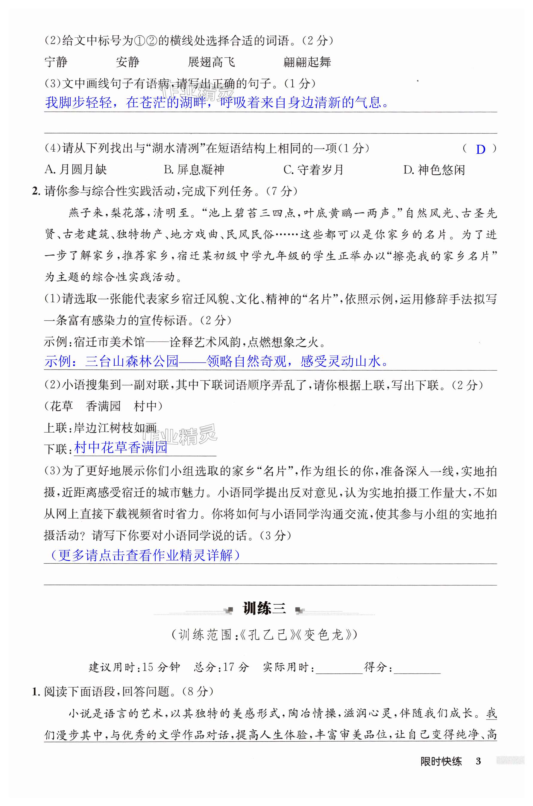 注:目前有些书本章节名称可能整理的还不是很完善,但都是按照顺序排列的,请同学们按照顺序仔细查找。练习册 2025年启东中学作业本九年级语文下册人教版宿迁专版 答案主要是用来给同学们做完题方便对答案用的,请勿直接抄袭。