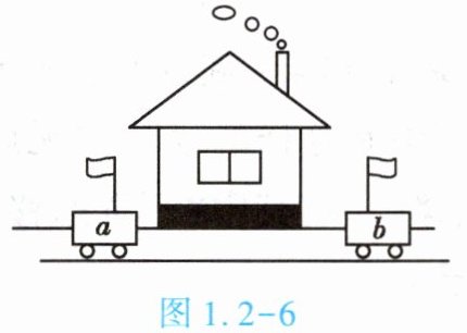 7. (★★★)(双选)公路边有一农舍,它的烟囱正冒着烟,插有旗帜的a、b两车在农舍旁的公路上。观察图1.2 - 6中旗与烟的情况,判断以下关于a、b两车相对于房子的运动情况的说法,正确的是 【 】
