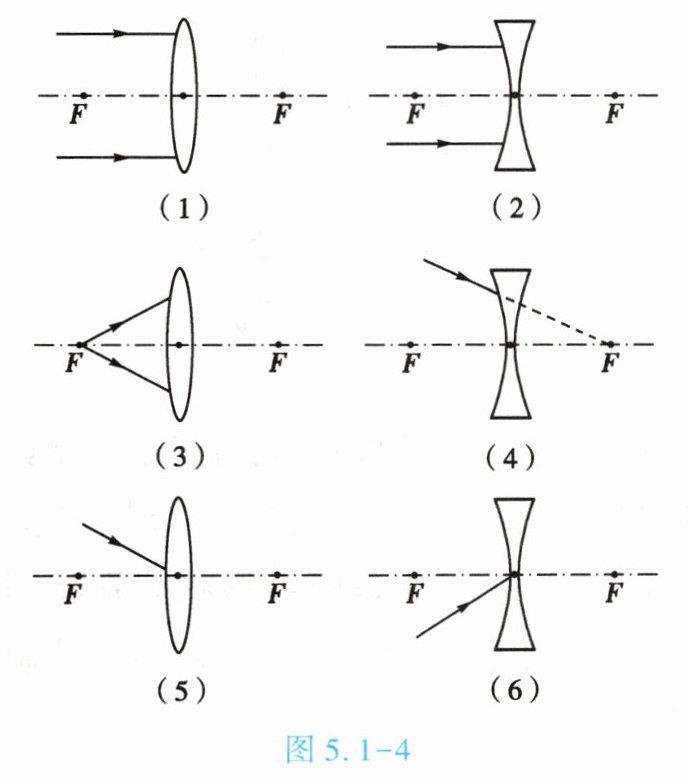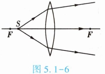 2. (★★)放在凸透镜主光轴上焦点F以内的点光源S发出的光通过凸透镜后的光路如图5.1-6所示,则下列说法正确的是【】