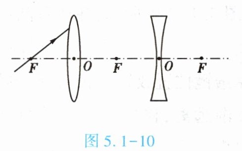 6. 如图5.1-10所示,凸透镜与凹透镜的一个焦点重合,请根据入射光线,画出相应的出射光线。