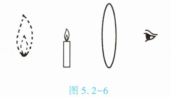 6. (★★)如图5.2 - 6所示,人通过凸透镜观察到的烛焰的像是