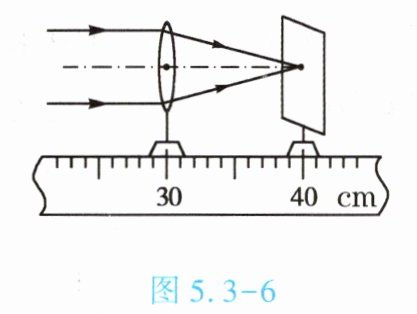 3. (★★★)如图5.3 - 6所示,一束平行光经过一凸透镜,调节光屏的位置,直到在屏上得到一个最小、最亮的光斑。小明用此凸透镜做“探究凸透镜成像的规律”实验,当物体距凸透镜30cm时,重新调节光屏的位置,可得清晰的【 】