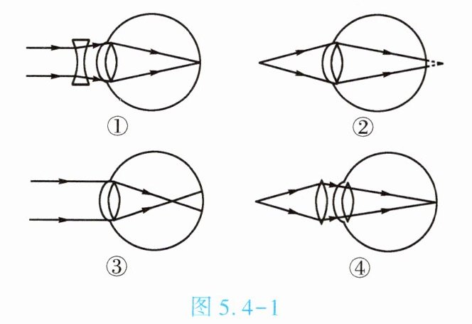2. (★★)图5.4-1中,分别表示近视眼成像情况和矫正做法的是【 】