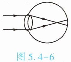 6. (★★★)如图5.4-6所示是小明的眼睛看物体时的成像情况,则他的眼病是______,需要戴______透镜用来矫正。若他所戴眼镜镜片的焦距为0.2m,则该镜片的焦度为$______m^{-1},$度数为______度。
