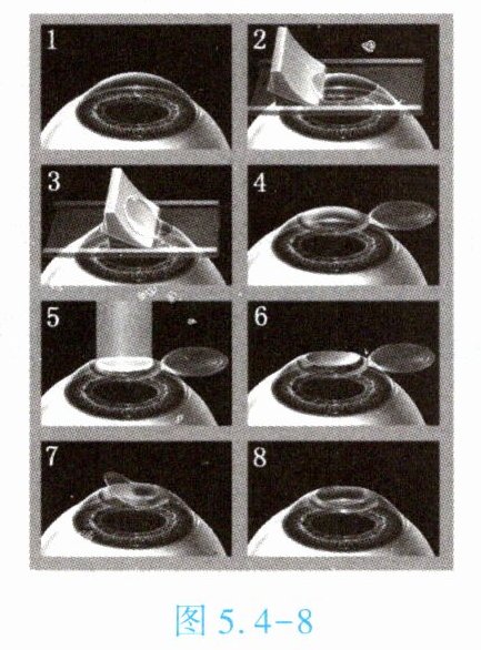 近视眼是眼球的前后径太长、眼角膜前表面太凸,外界光线不能准确会聚在眼底所致。准分子激光矫正近视是用电脑精确控制的准分子激光,根据近视度数和有无散光在瞳孔区的角膜基质层进行刻蚀,使眼角膜前表面稍稍变平,从而使外界光线能够准确地在眼底视网膜上会聚成像,达到矫正近视目的的现代技术(如图5.4-8)。