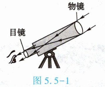 (3)如图5.5-1所示,这样的望远镜的放大倍率= ____(用物镜焦距$f_{物}和目镜焦距f_{目}$表示)。