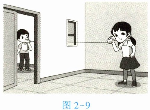17. 如图2-9所示,小明与小华用细棉线连接了两个纸杯,制成了一个“土电话”。