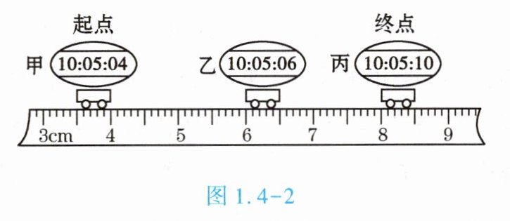 3. (★)如图1.4 - 2是某实验小组做“测量平均速度”实验的情景,显示时间的数字钟的时间格式是“时:分:秒”,则小车从起点到终点经过的路程为____cm,经历的时间为____s。