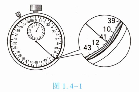 2. (★)观察如图1.4 - 1所示的秒表,大盘每一小格代表____s,此时的秒表所表示的时间是____s。