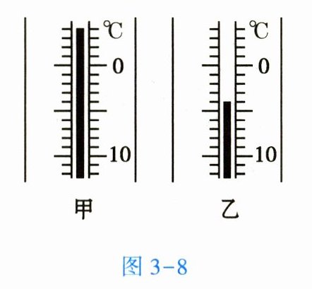 15. 用同一支温度计分别测量当天正午与晚上的气温。两次温度计的示数分别如图 3 - 8 甲、乙所示,其中图______是晚上的气温,其示数是______℃。