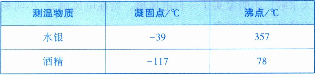 |测温物质|凝固点/℃|沸点/℃|