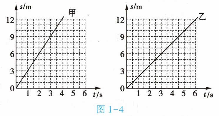 5. (★★★)(双选)P、Q是同一直线上相距12m的两点,甲从P点、乙从Q点同时沿直线相向而行,它们运动的s - t图像如图1 - 4所示,分析图像可知【 】