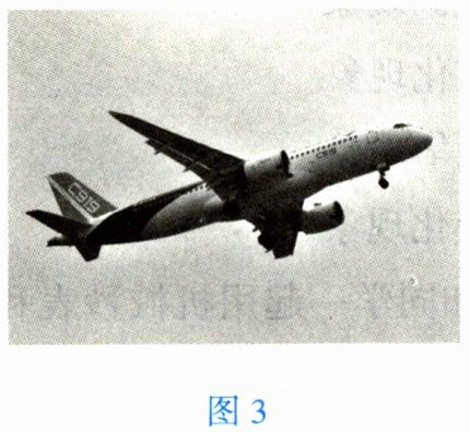 9. (2023·邵阳)2023年5月28日上午,全球首架C919大型客机从上海虹桥机场顺利起飞,到达北京首都机场,完成首次商业载客飞行(如图3)。飞机飞行过程中,某乘客看到机翼是静止的,他所选的参照物是【 】