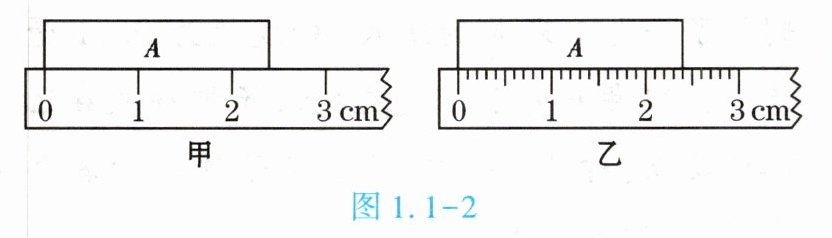 3. (★★)如图1.1 - 2所示,用分度值不同的刻度尺测量物体$A$的长度。