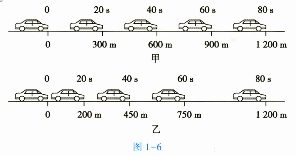 13. (双选)(2024·乐山)图1-6记录了甲、乙两辆汽车在平直的公路上行驶时,在相同时间内通过的路程,图甲中的汽车平稳行驶,图乙中的汽车从静止开始前进。根据图中信息,下列说法正确的是【 】