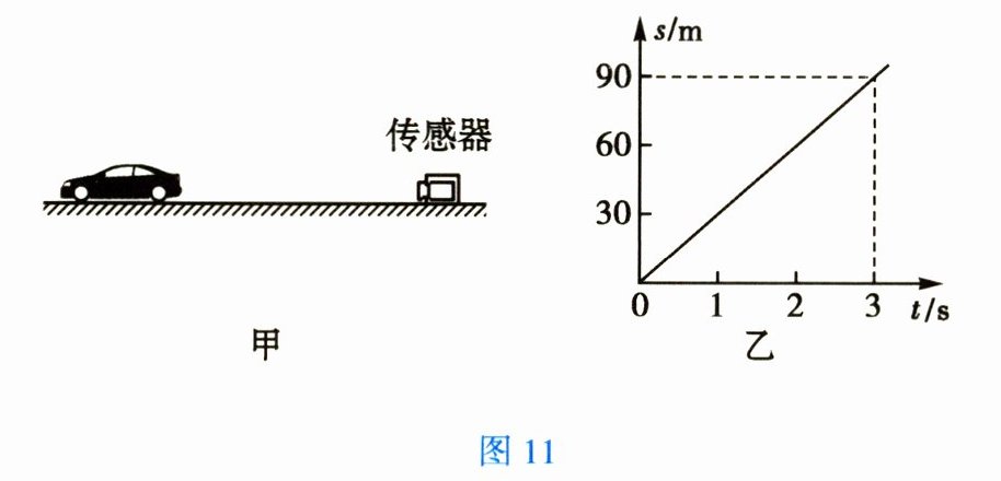 (2)某路段限速80km/h,超声波测速仪显示出汽车的$ s-t $图像如图11乙所示,则该车的速度是多少?是否超速?
