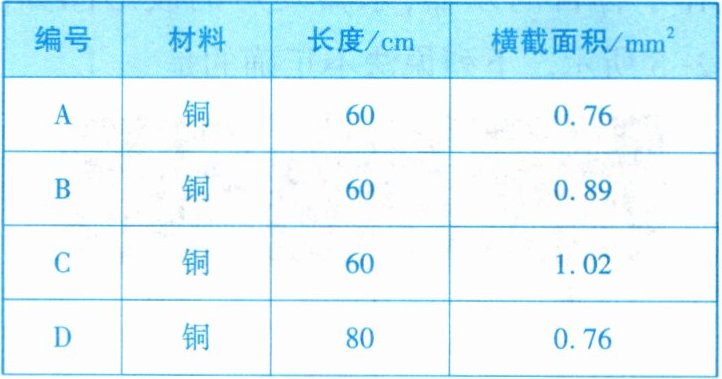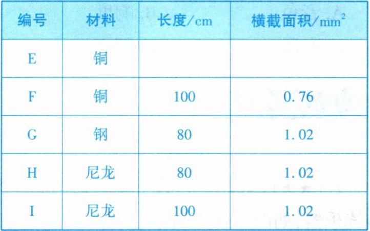 |编号|材料|长度/cm|横截面积$/mm^2$|